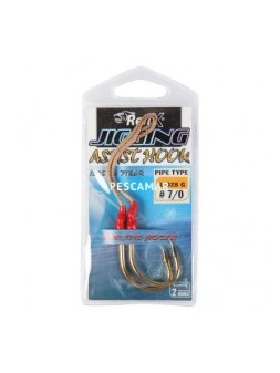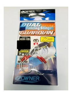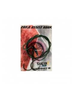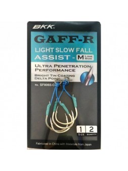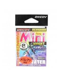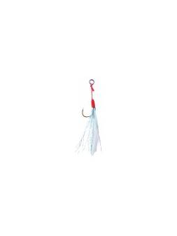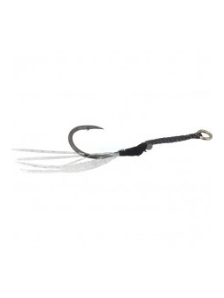 Assist Asari Micro Slow Doble: Assist hook doble montado con anzuelos ISEAMA Black Nickel fabricados en Japón. Montado con PE de color blanca, flashing violetas y piel de pez.