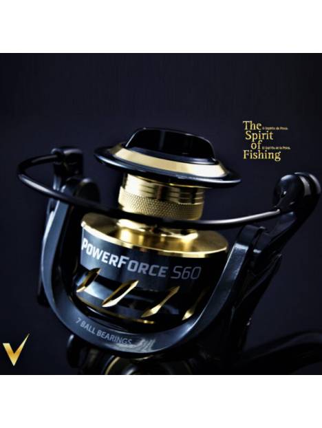Carrete Vega Power Force S: Con una estética cuidada y muy atractiva, los carretes Vega Power Force S30, S40 y S60 son carretes de gama media de entrada, que ofrecen un rendimiento y prestaciones superiores. La fluidez y precisión de la mecánica apoyada en 7 rodamientos de bolas y detalles como la manivela sobredimensionada o las placas laterales de aluminio las diferencian de la competencia en su rango de precios. En estos carretes el cuerpo y rotor son de grafito, cuentan con 7 rodamientos de bolas de acero inoxidable, sistema anti-reverse infinito, arrastres progresivos con potencia de 8kg en el S40 y 9kg en el S60, ratio de recuperación 5.2:1 (86cm) en el S40 y 4,7:1 (84 cm) en el S60. Las Power Force S40 y S60 cuentan con una bobina principal de aluminio y una bobina adicional de grafito, ambas con una capacidad de 200m de 0,30mm en la S40 y de 270m de 0,35mm en la S60.